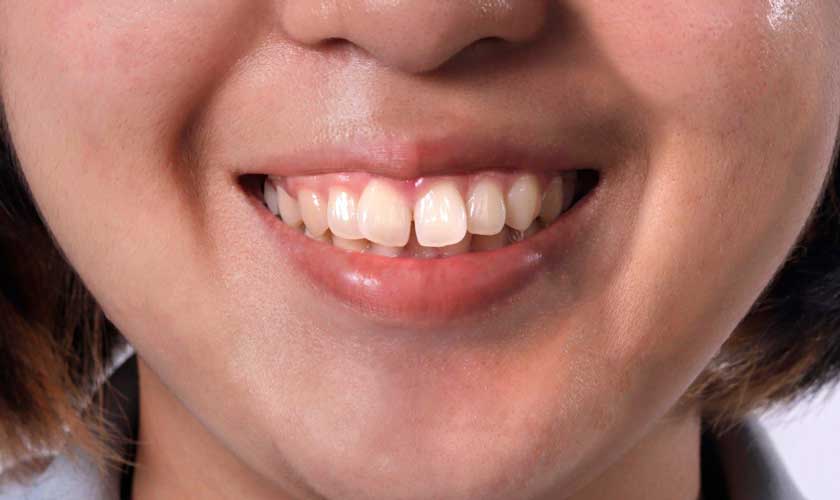 - Trong tư thế nghỉ, răng hàm trên nhô ra quá mức, không thể khép kín với hàm dưới. Đây là biểu hiện điển hình của sai lệch khớp cắn.