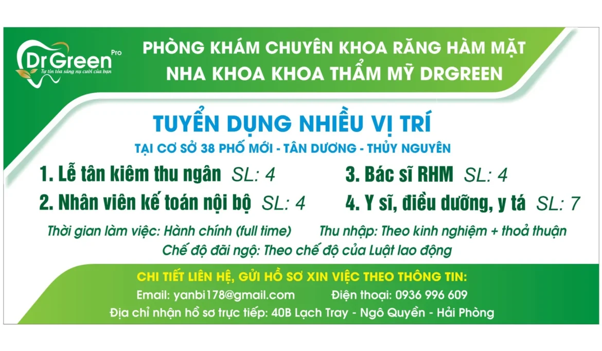 Hệ Thống Nha Khoa DrGreen Tuyển Dụng Nhiều Vị Trí