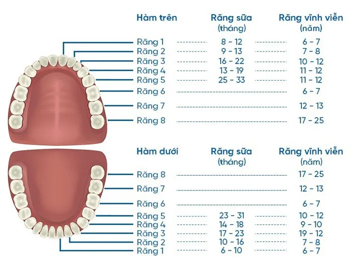 Thứ tự mọc răng vĩnh viễn hàm trên
